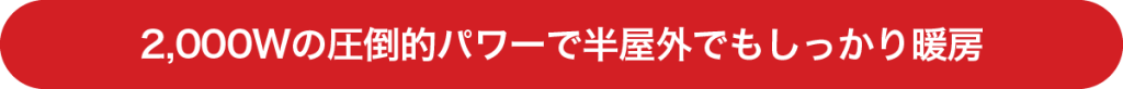 一般的な電気ストーブでは難しい高出力暖房を実現。2,000Wのパワーは従来の遠赤外線ヒーターの約2,400W相当に匹敵し、開放的な開放・半開放空間で効果を発揮します。