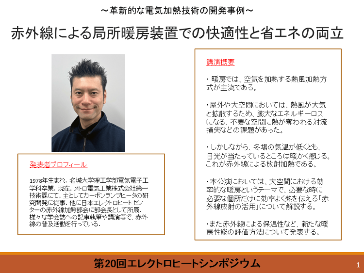 演 題:赤外線技術による解放空間での効率的な暖房とその応用について