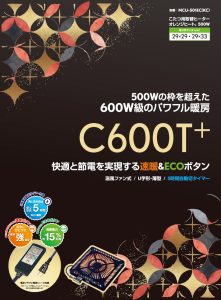 C600T+、C600Tは500Wながら600W級のパワフルな暖房を実現。省エネと快適性を両立が実感できます。