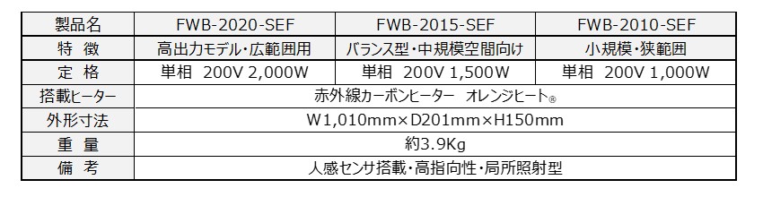 赤外線カーボンヒーター 局所暖房装置 「速暖くん®」 FWBシリーズに2タイプが新登場