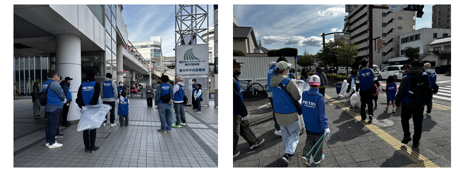 豊田市駅前に集合し、スカイホール豊田までの道のりを約30分、ごみを拾いながら歩きました。